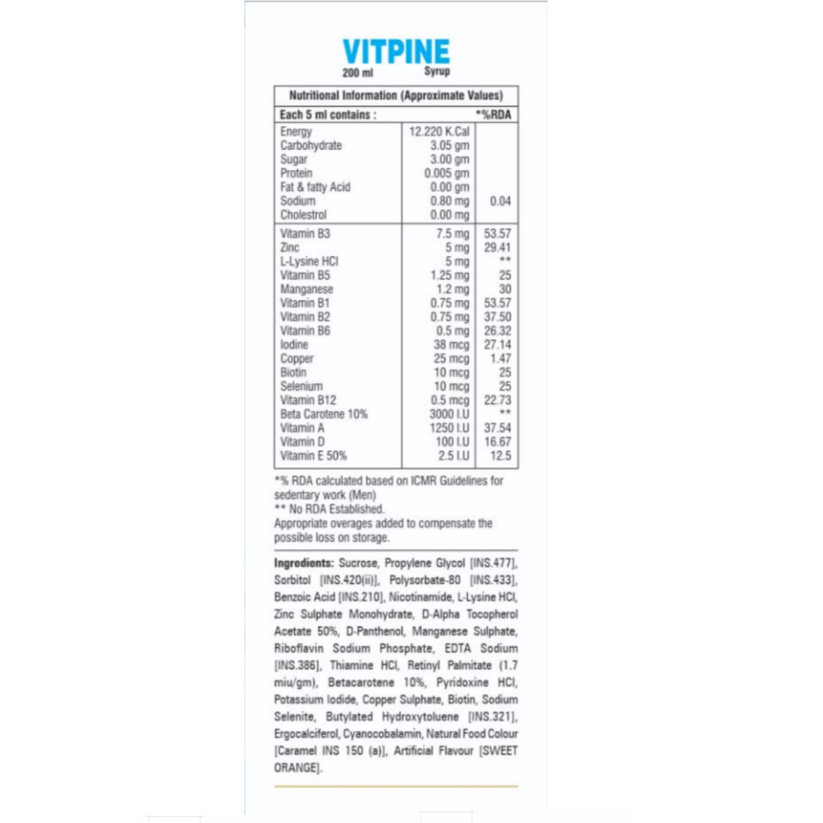 Information about Vitpine Syrup | With Essential Vitamins | Nutrition Booster